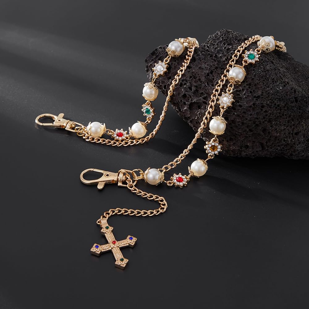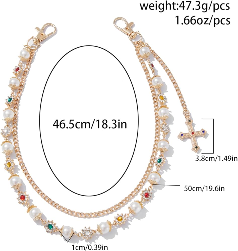 PREMIUM MATERIALS: Crafted with durable metal link chains, decorative faux pearls, and sparkling rhinestone embellishments for lasting style. The detailed flower embellishments and pearl details make each chain a unique piece of wearable art