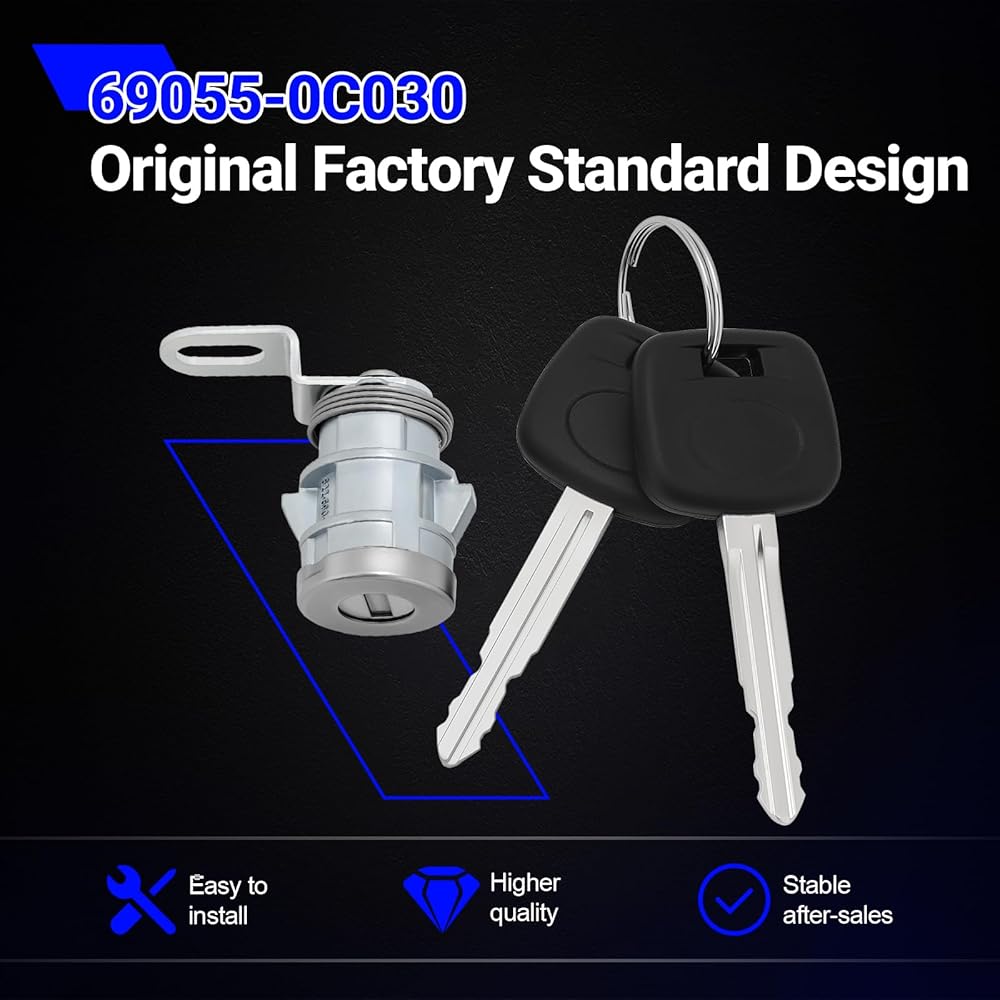 ✔ OE#69055-0C030 – 69055-0C030 precision-rear tailgate lock cylinder with keys is crafted for an exact OEM fit, designed to directly replace worn, rusted, or damaged original components, it restores smooth operation of your liftgate tailgate while enhancing security. The corrosion-resistant alloy construction ensures long-term durability against harsh environments.