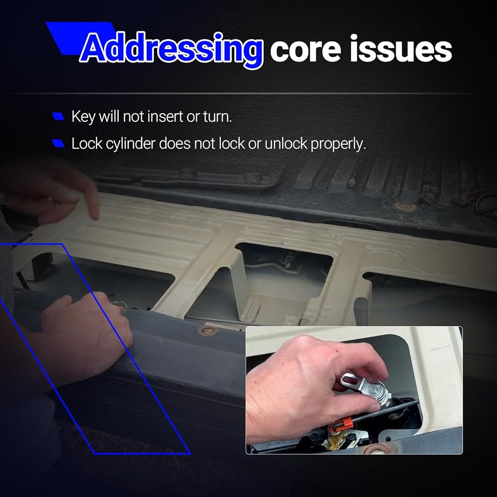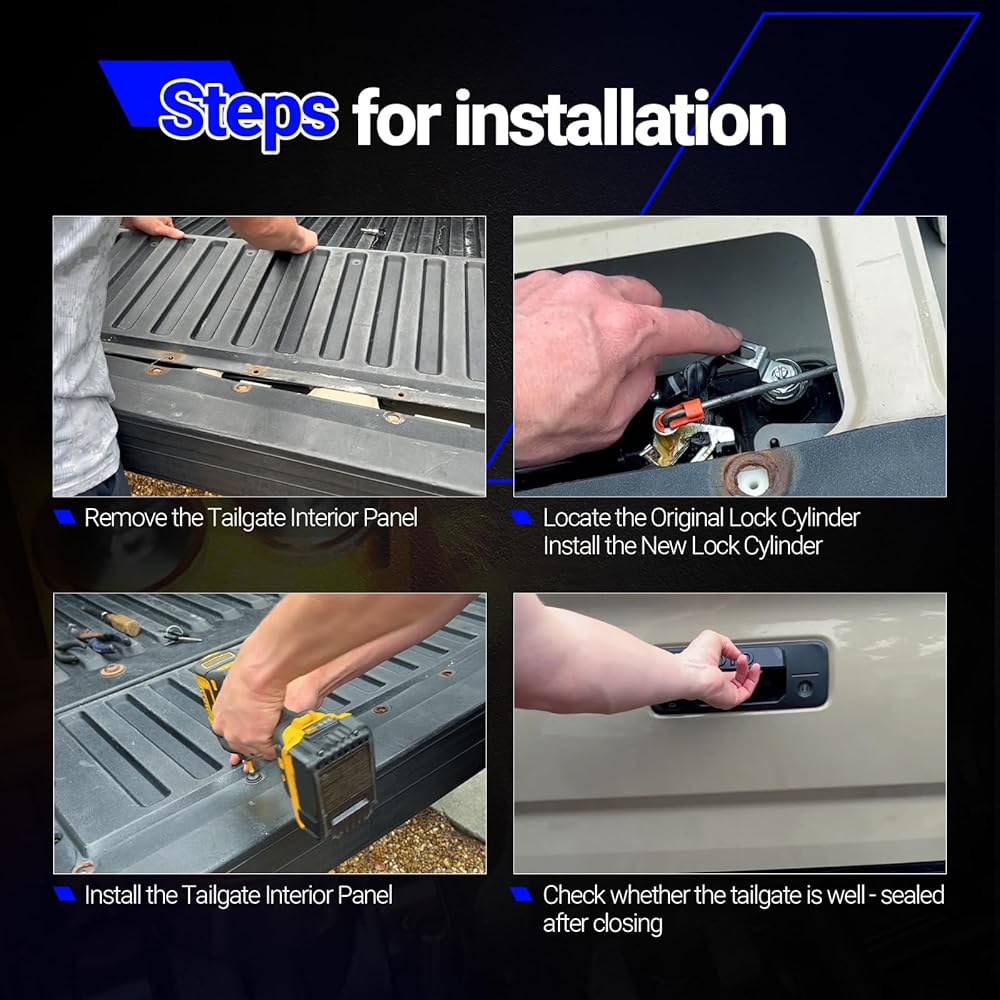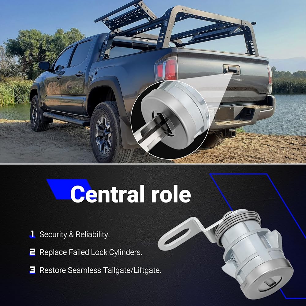✔Package includes:1 x Tailgate Door Lock Cylinder, 2 x Keys.Check relevant replace video when you in doubt.