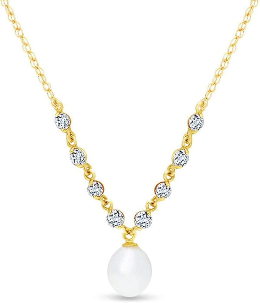 14k Gold Drop Necklace with Natural Aquamarines & Grade A/A+ cultured Freshwater Pearl - Galaxy Gold Hand crafted Fine Jewelry with Solid Gold and Genuine Gemstone. Comes in Black Velvet Gift Box with Gold Trim, encased in a white box. Also Available in Special Chocolate and Gold Ribbon Gift Box. Item comes with Jewelry Tag and is Proudly Made in USA. Certificate of Appraisal is available upon request. Once you have placed the order you can contact us to include with the item. Gift Notes are also available.