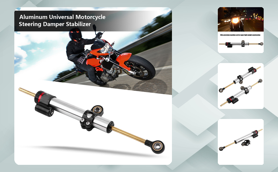 Motorcycle Steering Damper, Aluminum Universal Motorcycle Steering Damper Stabilizer for MT10 MT 07 MT09 Long Type