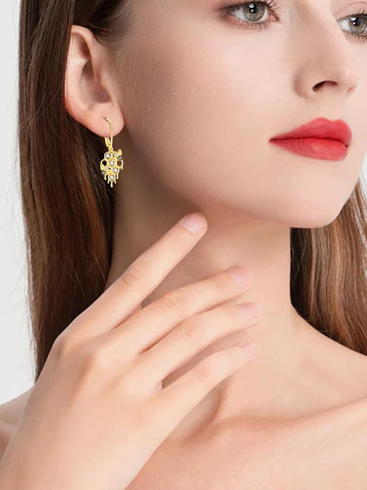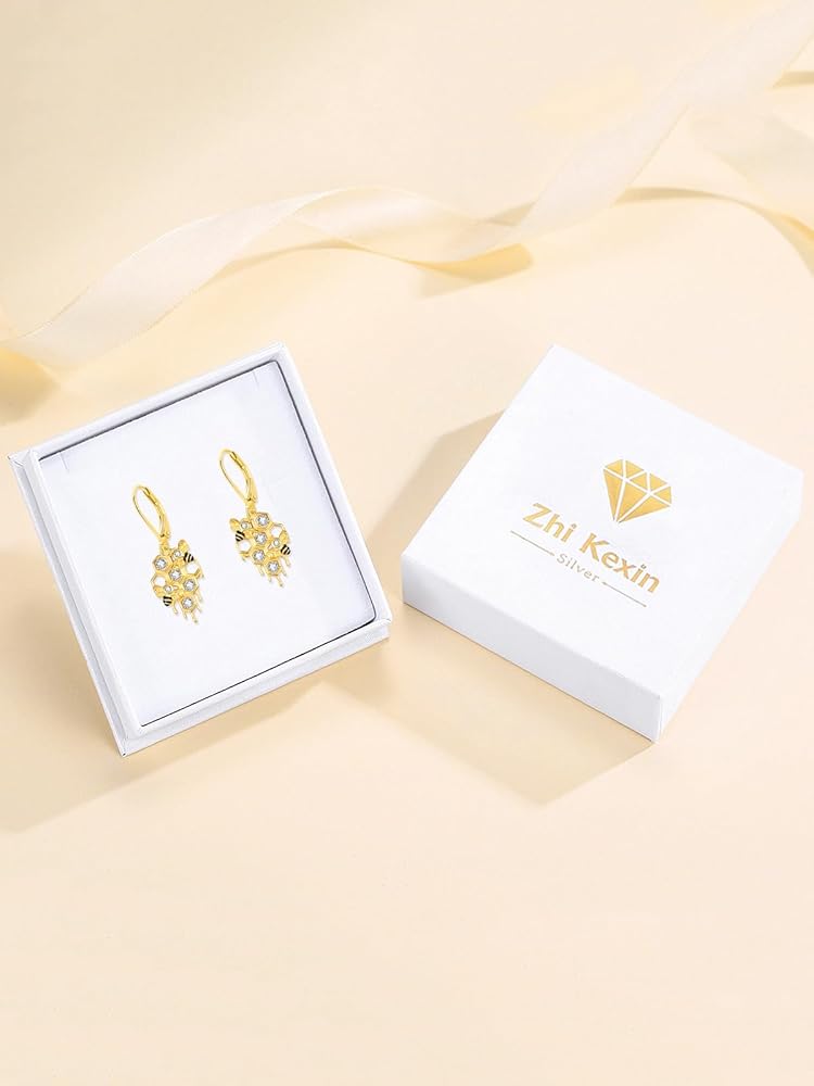 【Size & Material】- The gold plated bee honeycomb dangle drop earrings is made of 925 sterling silver and 18k gold plated, set with AAA cubic zirconia, which is elegant and beautiful. Earrings height: 32 mm/1.26 inches.