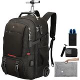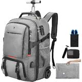 【Versatile 2-in-1 Travel Backpack】This rolling backpack features an aluminum alloy rod, non-slip wheels, and detachable shoulder straps, easily transforming from a backpack to a carry-on suitcase. Perfect for all types of travel, including weekend trips and business travel.