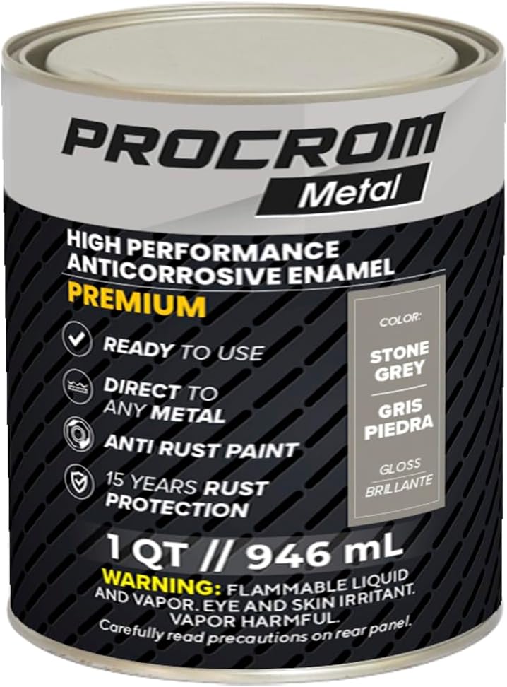 Premium Metal Paint – Gloss Stone Gray, 1 Quart | Direct-to-Metal, Professional Finish, Anti-Rust Protection, Fast-Drying Indoor & Outdoor Coating