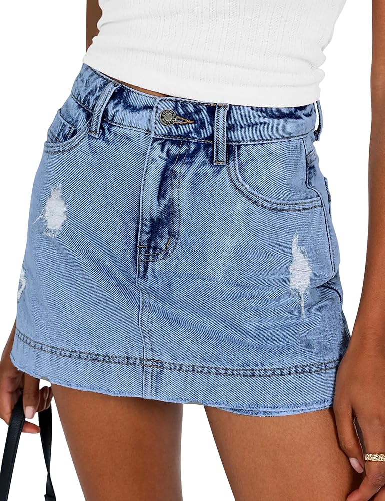 HIGH QUALITY DENIM FABRIC: The ripped denim mini skirt pants skirt is made of high quality denim fabric - 85% cotton. The denim skirt has a good stretch effect, so you always keep your beautiful figure. Meanwhile, the fabric of jean skirt for women is lightweight and breathable, keeping you comfortable throughout the year. Unique ripped design makes you love the style.