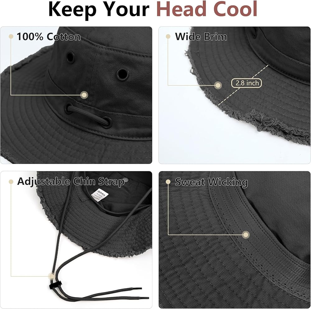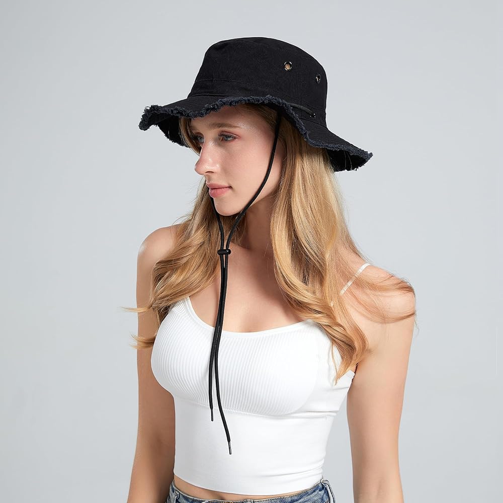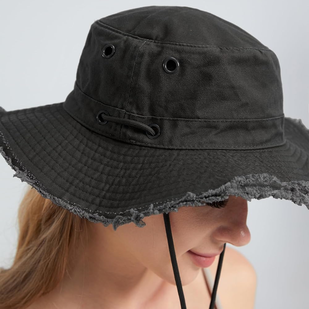 Stylish & Functional: Combining rugged charm with modern functionality, the Linpr Bucket Hat is more than just a practical accessory—it's a stylish statement. The frayed brim detailing adds a touch of elegance, making it suitable for various occasions, from gardening to beach outings