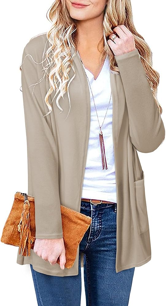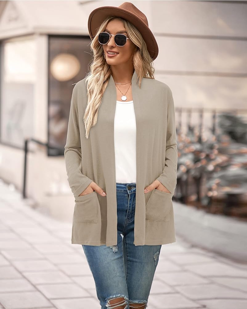 Cardigan Sweaters for Women——Long Sleeve, 2 Pockets, Just Hip Length, Open Front Sweaters, Cover up, Casual Business Cardigan Tops 2024 Fall Fashion Clothes