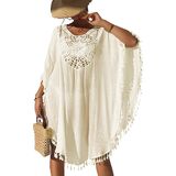 Crochet Design: this long bathing suit cover up for women features a delicate crochet lace neckline, and the flowy fringe hem sways with every step, a loose fit for added comfort, making it a trendy addition for beach or poolside