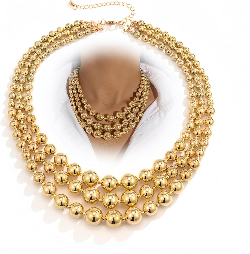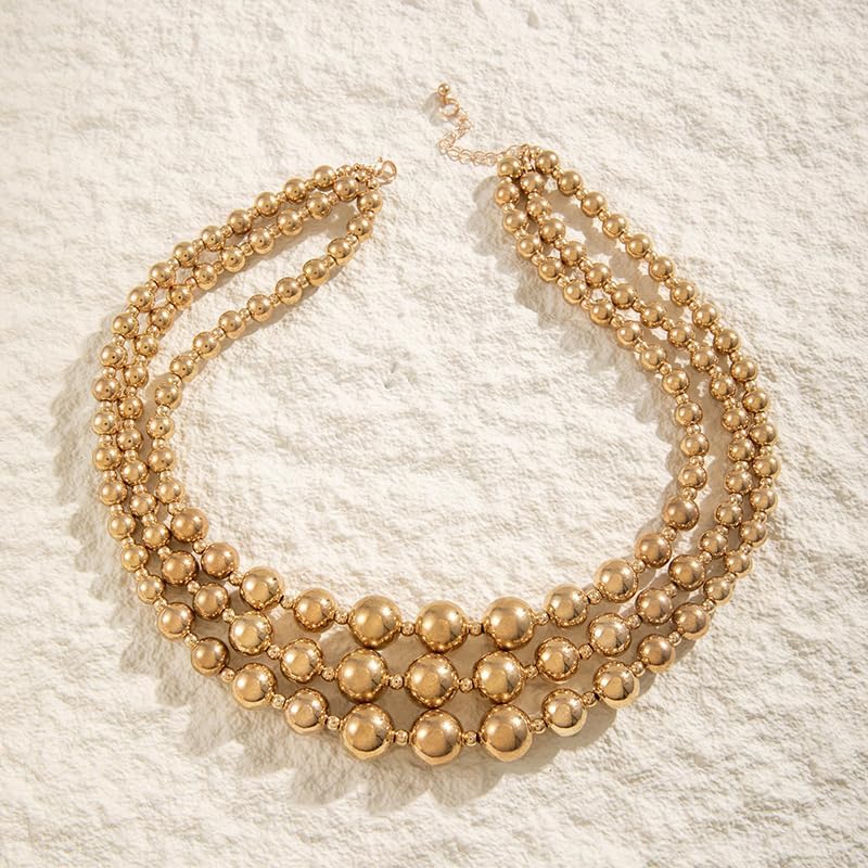 Chunky Balls Beaded Gold Statement Necklace for Women Vintage Large Layered Choker Exaggerated Big Round Ball Beads Collar Necklaces Trendy Hip Hop Jewelry