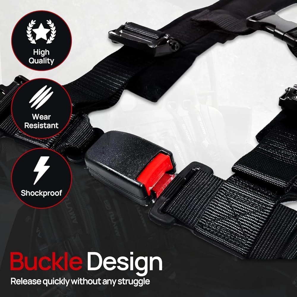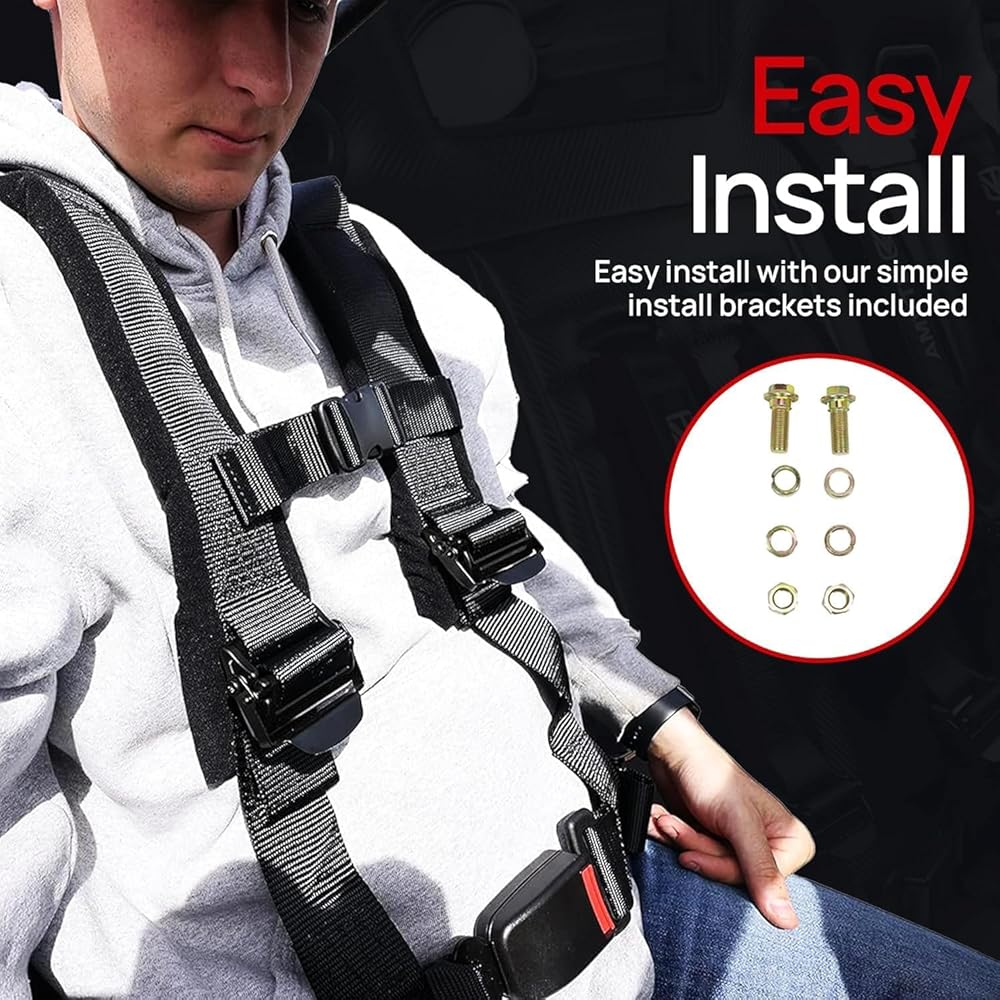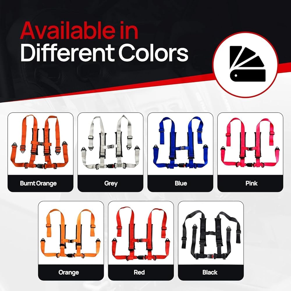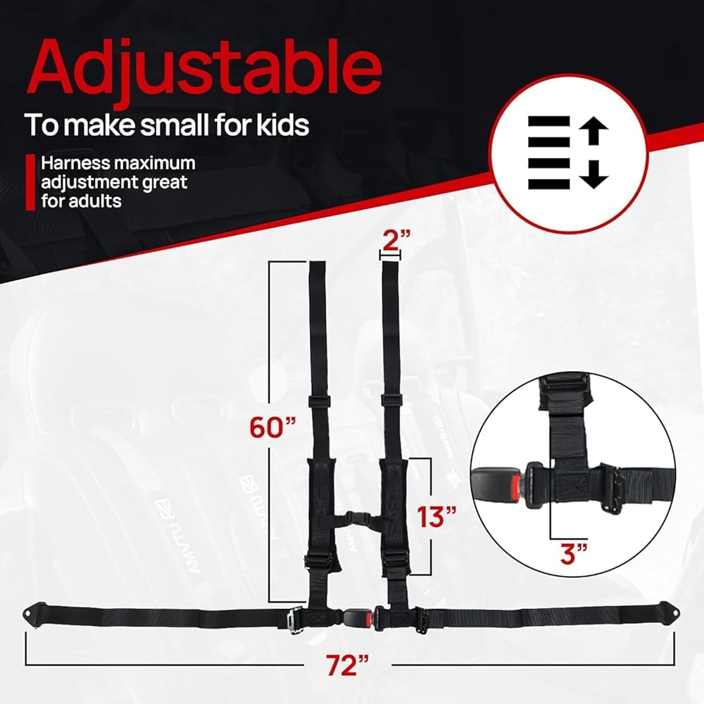4.2 Off-Road Harness (2-Pack) Includes: (2) 4.2 Harnesses – Black Designed for ultimate comfort and safety, our 4-point, 2-inch harness is built for off-road adventures. Featuring sewn-in shoulder pads, it prevents neck chafing and ensures a comfortable ride, even on long trails. The adjusters make it easy to tighten or loosen the straps—whether clean or covered in mud. Styled with sleek black hardware, this harness adds a rugged, high-performance look to your setup. The automotive-style latch on the lap belt allows for a quick, secure release that's simple to use. Important Safety Information Proper installation and consistent use of this harness are essential for your safety in the event of an accident. To reduce the risk of serious injury or death: Always follow the installation and safety guidelines provided by your vehicle manufacturer and our instructions. Secure the lap belt first, ensuring it sits low and snug across the hips. Tighten the sternum strap securely across the chest (at least 4 inches below the neck). Adjust all straps properly to ensure a snug fit while maintaining safe clearance from the steering wheel, dash, roll cage, and other components. Regularly inspect all parts of the harness for wear, damage, or signs of an accident, and replace as needed. This harness should be replaced within 2 years of the SFI tag date or purchase date, whichever comes first. This 4-point competition restraint system is intended for UTVs and other off-road vehicles—it is not a replacement for FMVSS 209 seat belts. Do not use this harness with child car seats or booster seats.