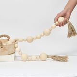 IDEAL DECORS AND GIFT: Unique natural beige large wood beads + hand-woven natural jute tassels, rustic country estate style symbolizes peace and beauty, practical and stylish, suitable for room, living room, dining room, bedroom, doorway, hallway, house, farmhouse, dormitory, office decoration. It is a perfect exchange gift for birthday, housewarming, everyday, and can also be used as an excellent photo background decoration for family, friends, couples, and children.