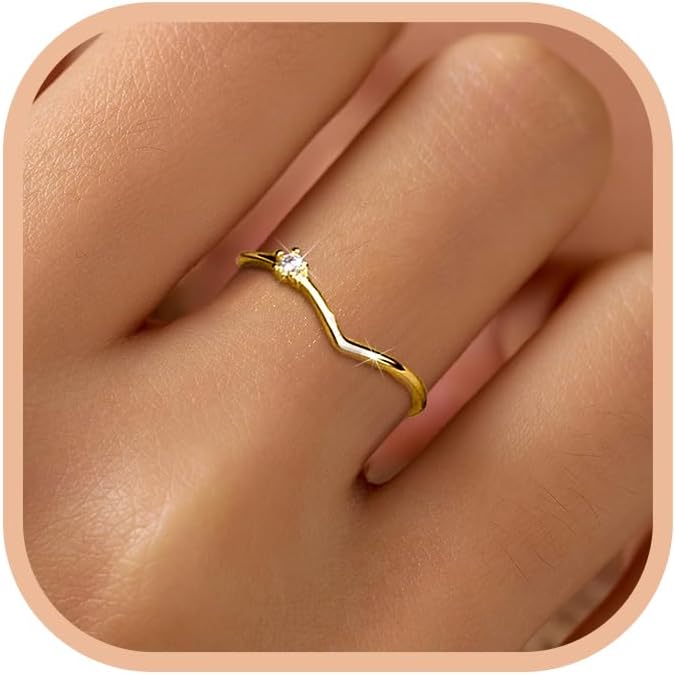 Unique Design: The ring design is inspired by geometric. The v are embellished with a cubic zirconia, and the ring reflects the light of various colors in the sun. Implies hope, good luck, and longing