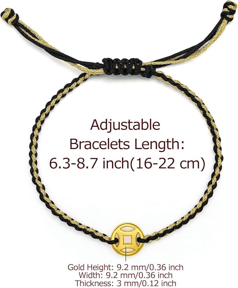 Creative innovation: This String bracelet design with 24k solid gold Coins on this rope. The design of this bracelet contains the meaning of blessing, bringing luck to people. Simple design of Braided String bracelet meets most of hair style and outfit, every occasion, bringing you lots of compliments!