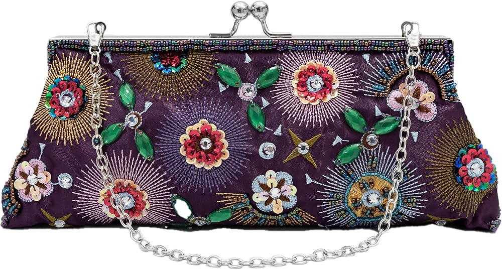 VINTAGE DESIGN: Inspired by the long, 2002s-era evening bag style, featuring intricate sequins, embroidery, rhinestones, and colorful beads, with a floral totem double-sided design that radiates retro elegance