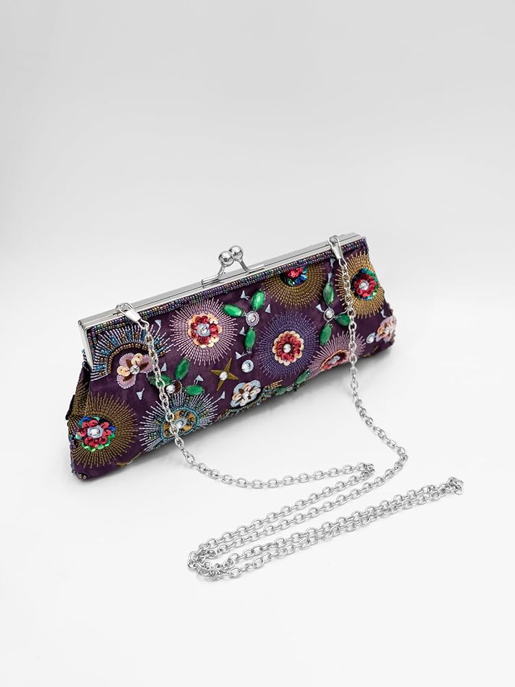 CRAFTSMANSHIP AND MATERIALS: Made of silk cloth and decorated with exquisite embroidery, rhinestones and beads, this bag exudes a high-end and sophisticated atmosphere, perfect for weddings, parties or other formal events
