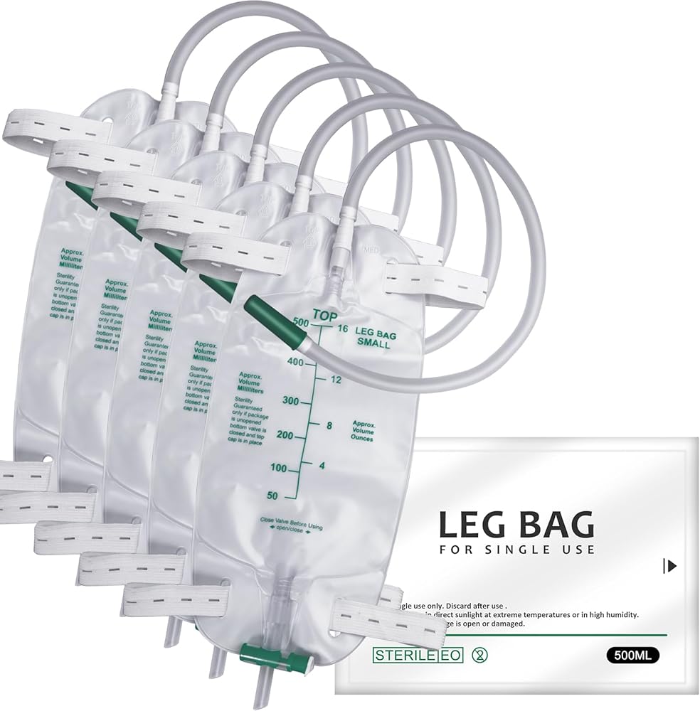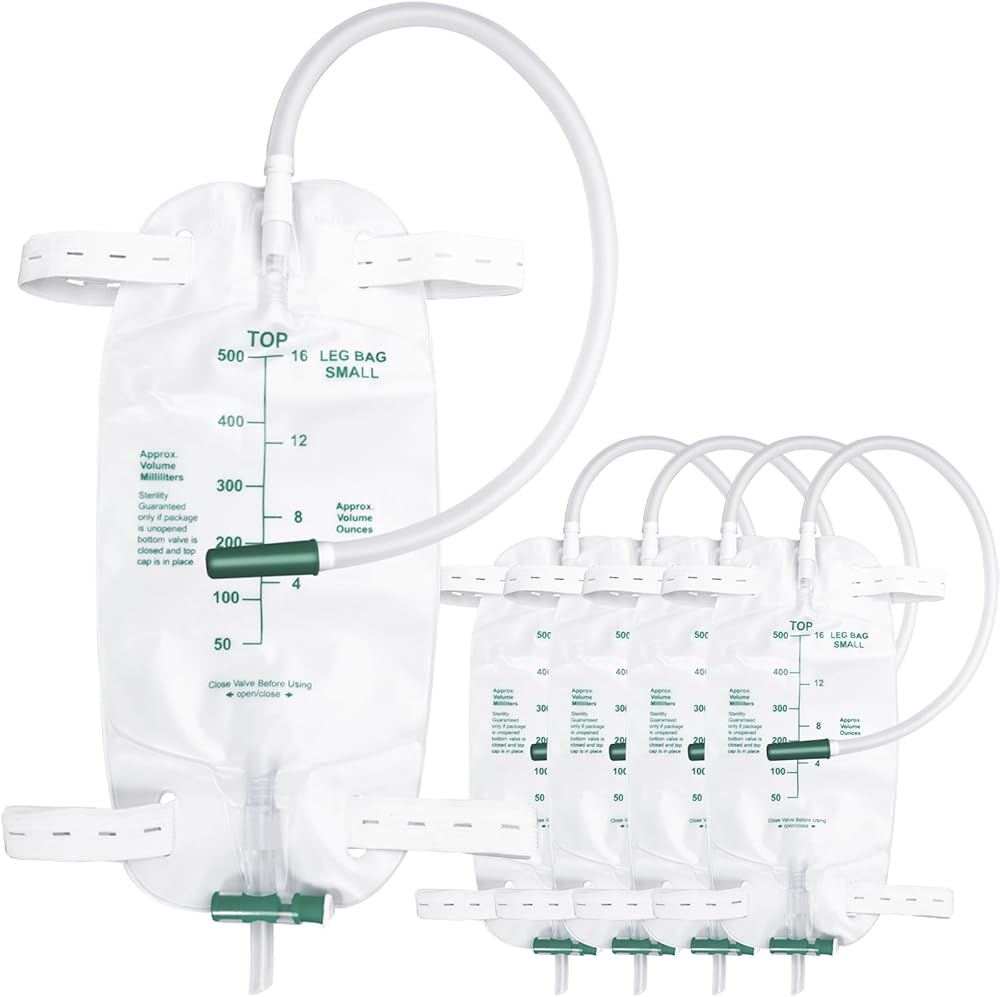 5 Pack 500ml Leg Bag with 18" Tubing – Portable & Wearable for Outdoor Activities, Travel, and On-The-Go – Leak-Proof with Adjustable Straps for Easy Drainage, Green