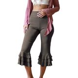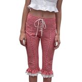 Y2k Capri Pants for Women Trendy Lace Ruffle Hem Flare Leggings Bell Bottom Skinny Gingham Cropped Bloomer Trousers