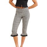 Features: Cropped pants women, solid color/plaid gingham checkered, Ruffle lace trim, cropped silhouette, tie-up, bodycon fit, elastic waist, below the knee, layered ruffle hem, y2k going out pants, trendy pants for women 2025