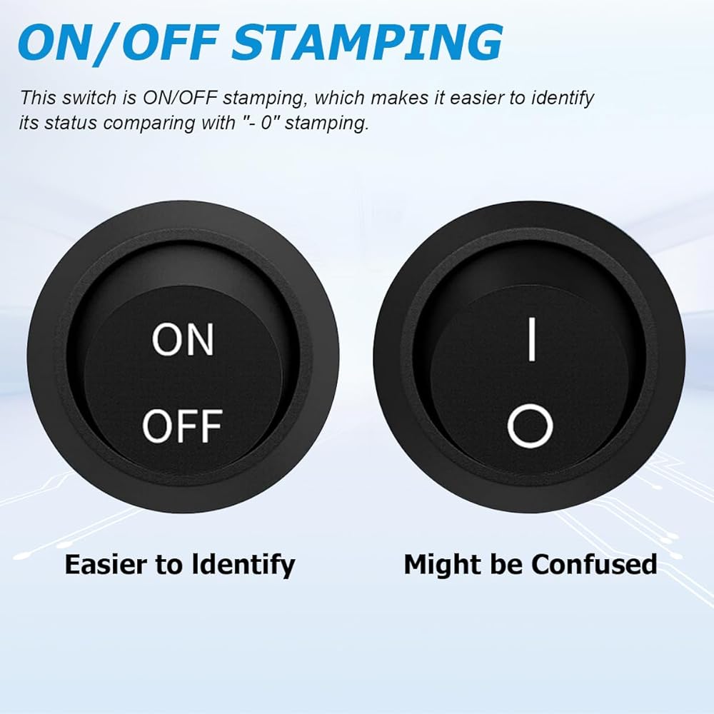 Features: This is a 12V switch with "ON/OFF" markings and features a 2-pin switch and SPST 2-position design. When you turn on the 12V switch, it will stay in ON position, then manually press OFF to turn it off. Unlike normal 12V mini rocker switches, this 12V rocker switch with "ON/OFF" marking makes it easier to recognize the state of the switch compared to "- O" switches.