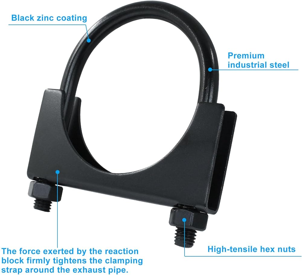 High-Quality Construction: The U-Bolt Muffler Exhaust Clamp is made of premium galvanized iron with a polished black surface. It is lightweight, durable, heat-resistant, and corrosion-resistant, ensuring long-lasting performance.