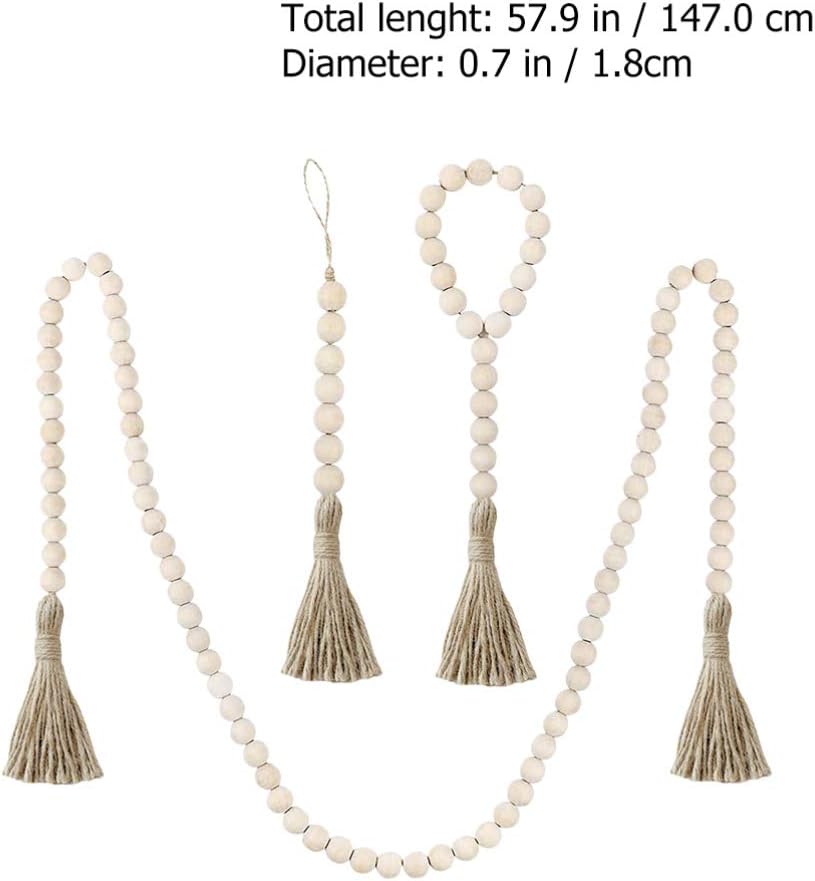 Modern Farmhouse Wood Decor: Wood bead string structure with simple color matching, easy to install, and the color can match to other decor . Fine workmanship ensures the practicality and durability, you can use it with confidence. Also, it matches with other accessories in your home, creating a rustic and delicate decoration style. You can use color pens to DIY, paint the wooden balls green or red to increase its Christmas flavor