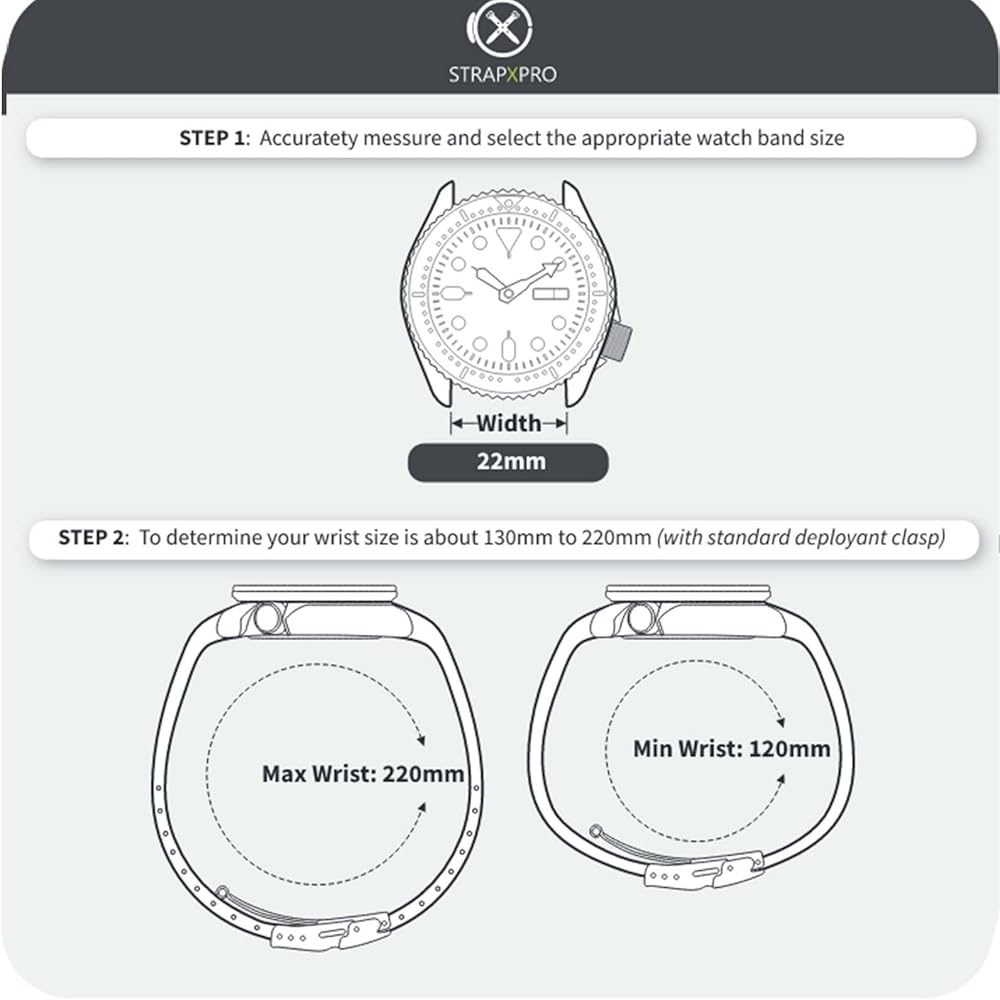 【Adjustable Watch Straps】The StrapXPro premium mens watch bands are paired up three-fold clasps, its cut-to-fit design can easily be adjusted to fit your wrist sizes. The rubber watch band fits the wrist size 4.7inches to 8.6inches ( 120mm to 220mm).