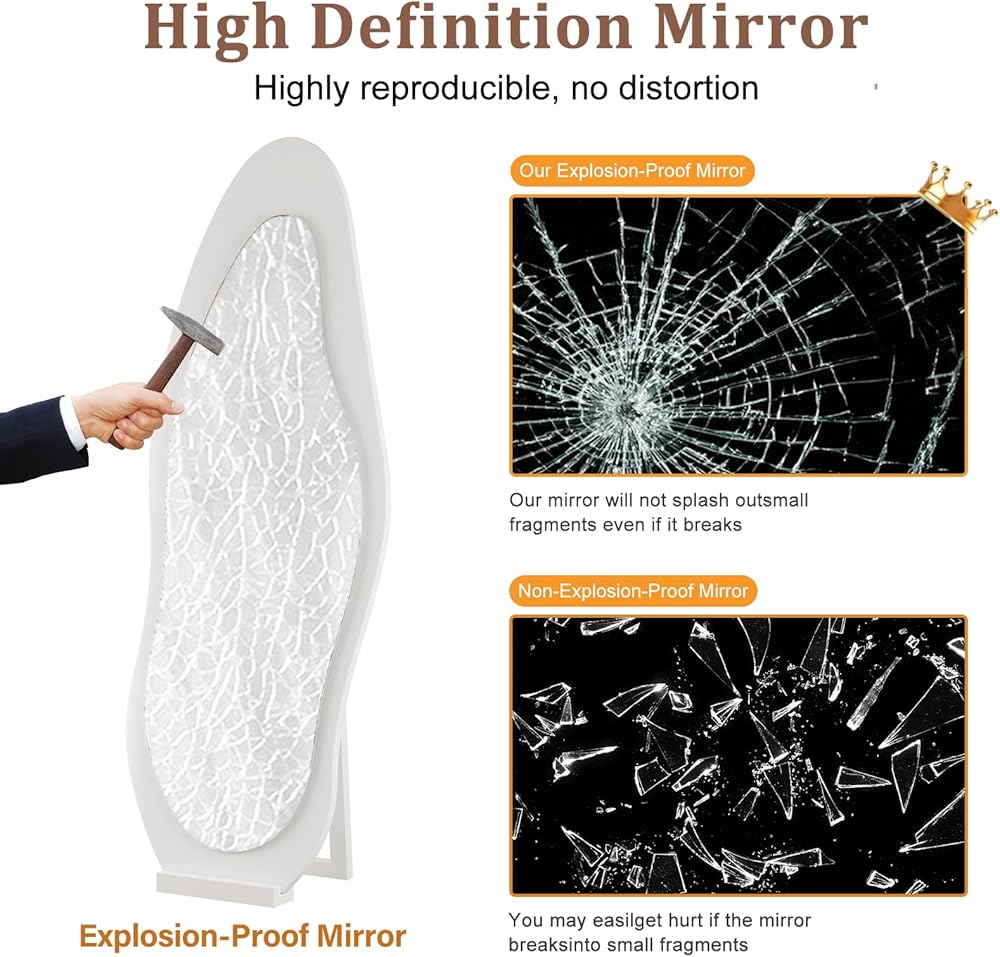 【HD - Shatterproof Protection】: This wavy mirror full length is made of high-definition mirror, presenting a more delicate and clear reflection, bringing you a real visual experience. The specially designed explosion-proof film greatly improves the safety performance of the mirror, even when subjected to strong impact, the debris will not fly apart, to ensure safety and worry-free
