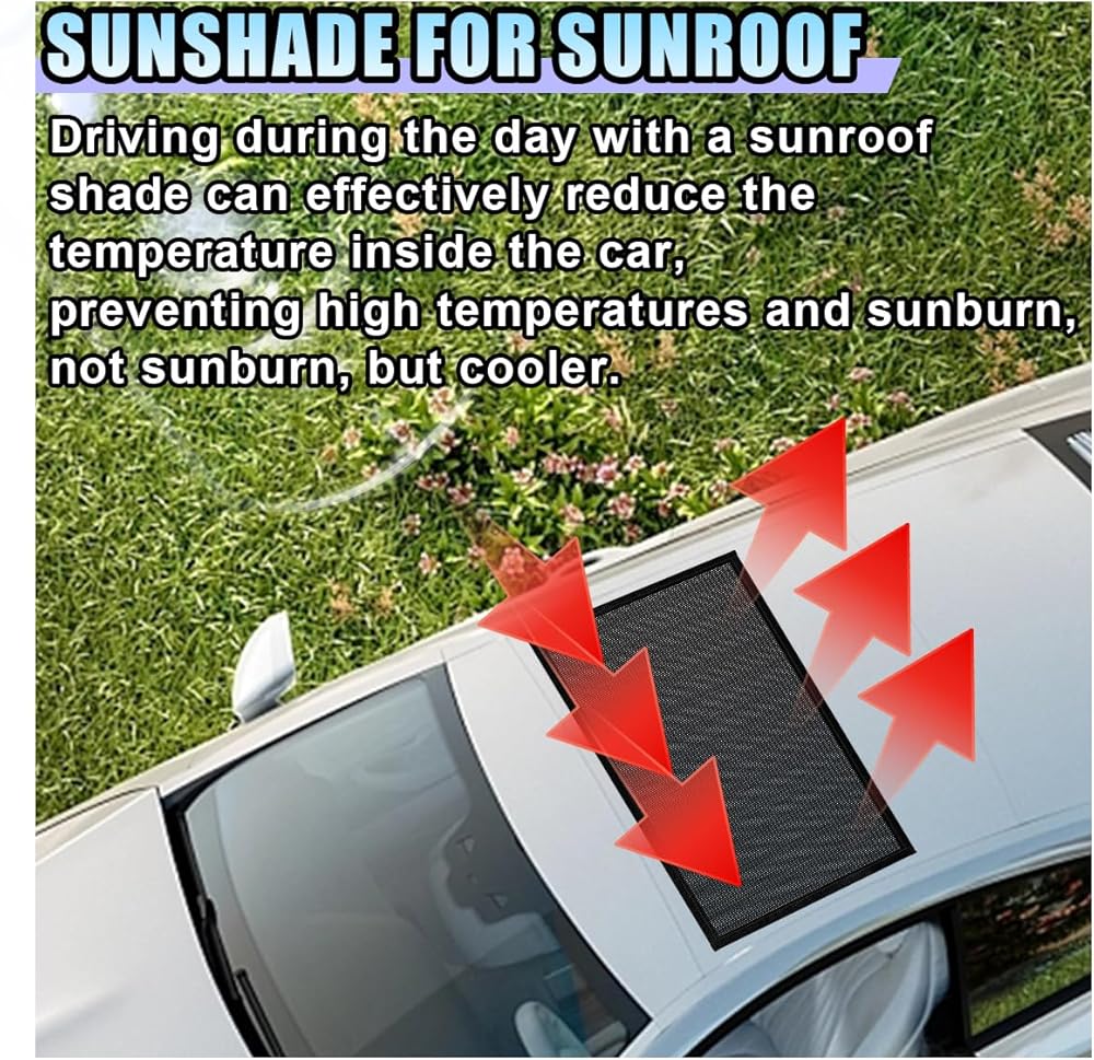 【Practical Function】: The car window screen is semi-transparent in design, while ensuring a wide field of vision, it can effectively block direct sunlight and ultraviolet rays, significantly reducing the temperature inside the car, preventing heat from accumulating, and creating a cool and comfortable interior environment. When the sunroof is open, the fine mesh can also block mosquitoes and foreign objects from entering, keeping the car interior clean.