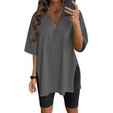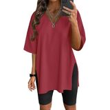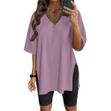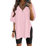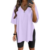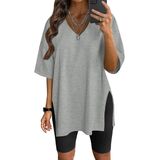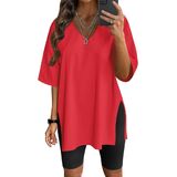 【UNIQUE DESIGN】: Womens oversized t shirts, deep v neck, drop shoulder, side split, plus size, loose fit, short sleeve, classic plain t-shirt, basic tee, tunic tops, casual, simple and sports, show your charm to everyone.
