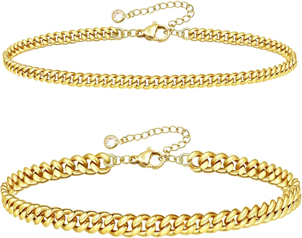 Gold Anklets Set: Show off timeless elegance with our chunky Cuban link ankle bracelets, crafted with a premium 14K gold-plated finish that resists tarnishing and maintains brilliant shine for long-lasting beauty