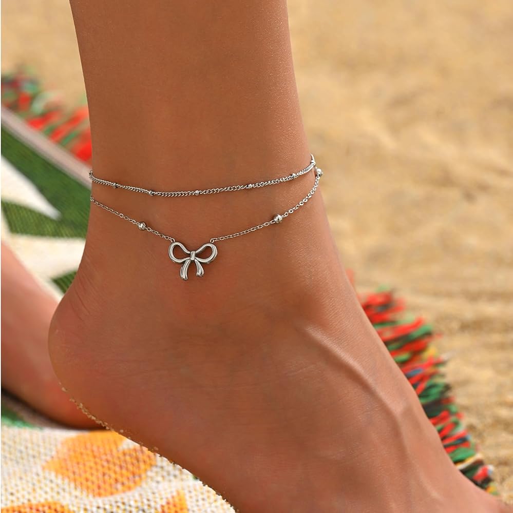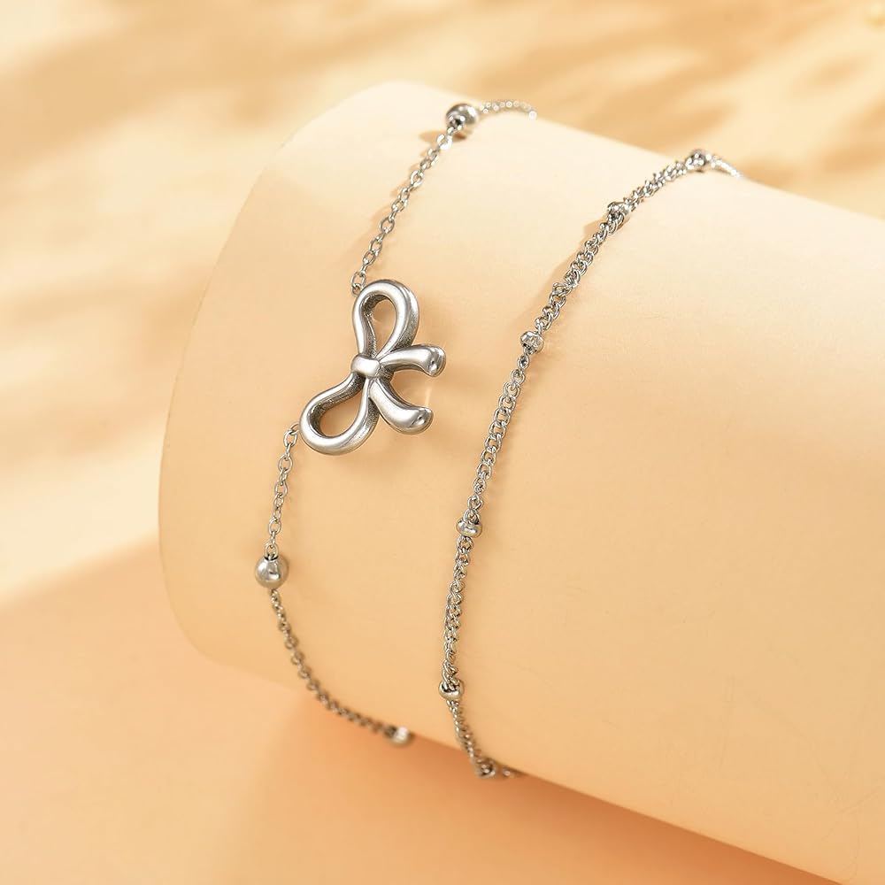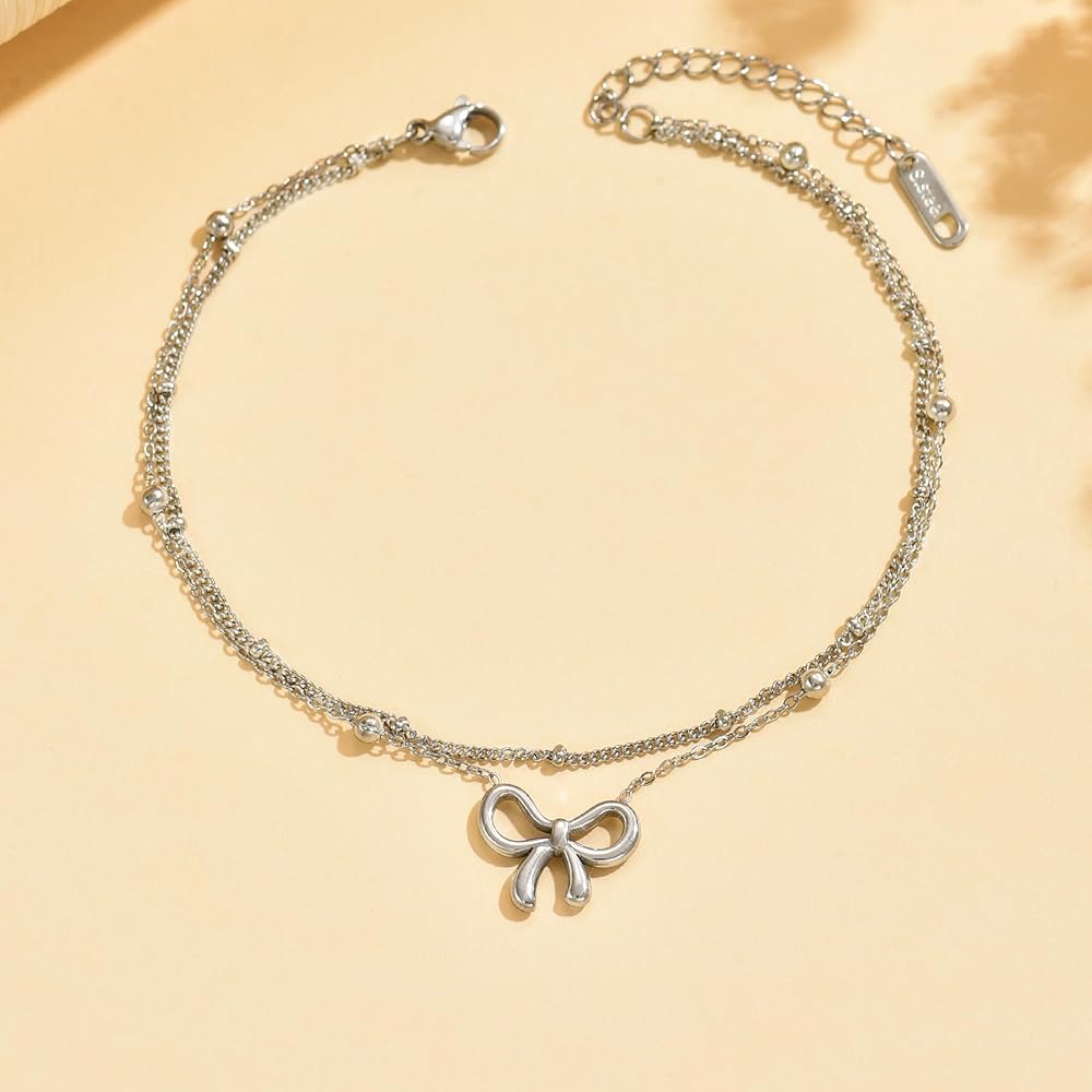 Stylish Design: The double-layer satellite chain adds depth and dimension, making this ankle bracelet a standout accessory. The delicate bow accent brings a touch of femininity and charm