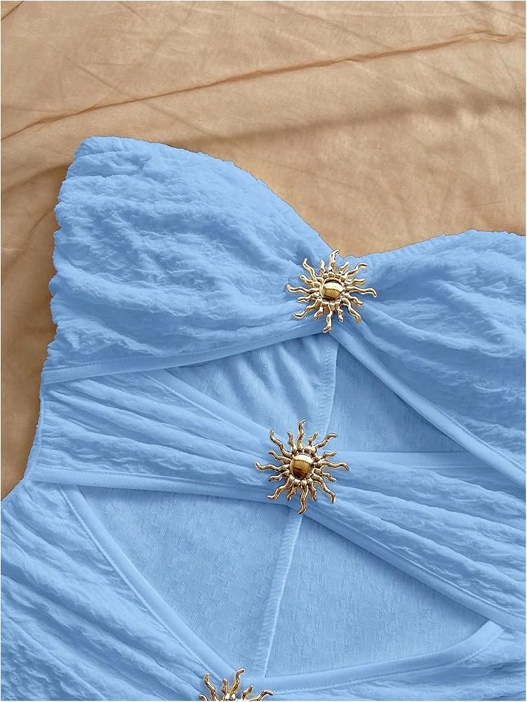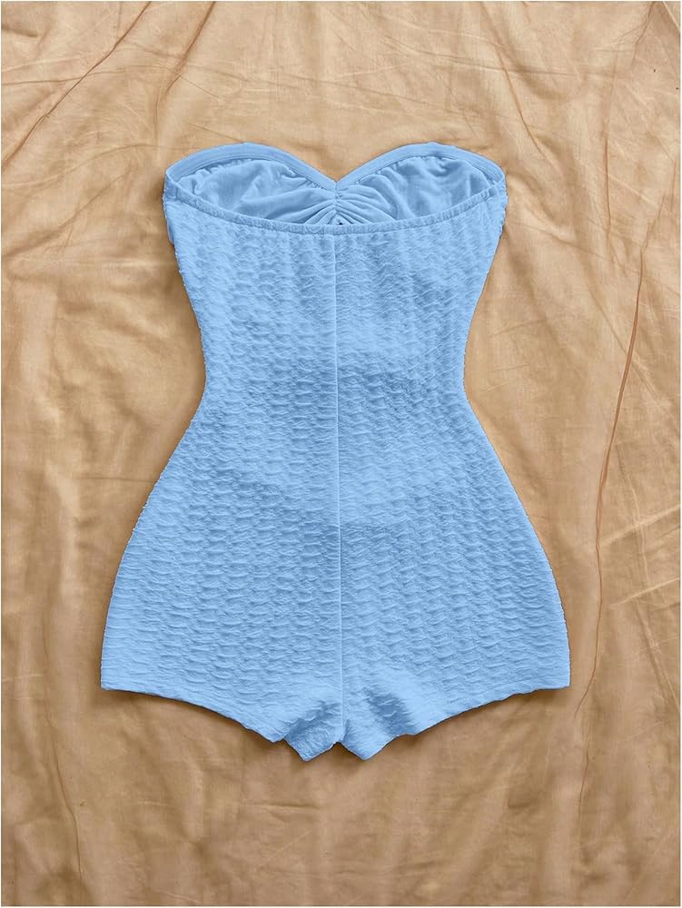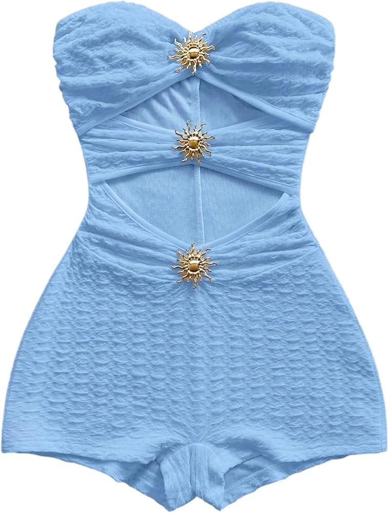 MakeMeChic Women's Summer Short Rompers Cut Out Bandeau Strapless One Piece Jumpsuits