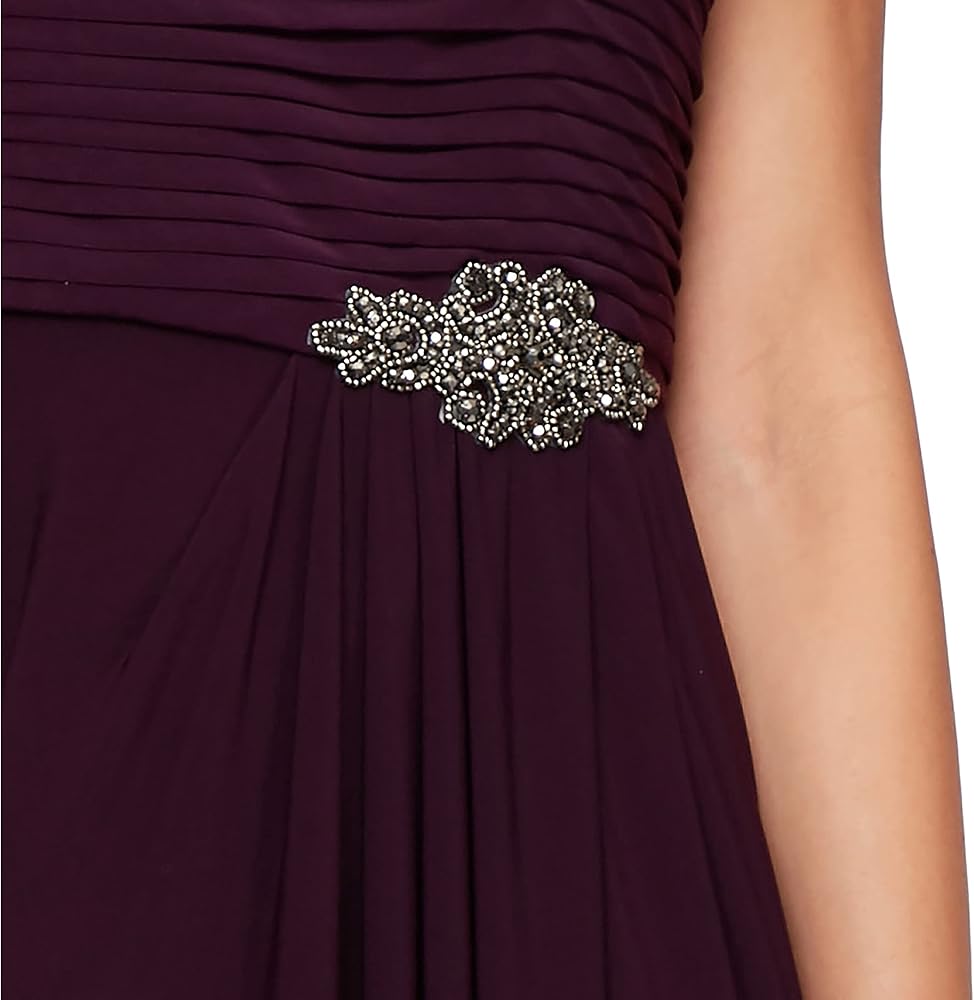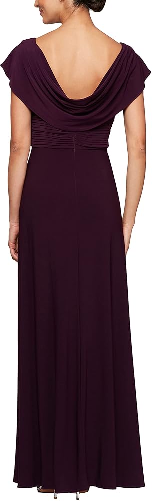 The Alex Evenings Women's Long Cowl Neckline Mother of the Bride Dress is the perfect choice for weddings, formal events, and special occasions. This stunning gown features an elegant cowl neckline and back, adding timeless sophistication to your look. The pleated bodice enhances your natural silhouette, offering a figure-flattering fit for petite, regular, and plus sizes. A beautifully embellished waist detail adds sparkle and refinement, making this formal evening gown ideal for mothers of the bride, mothers of the groom, or wedding guests. Crafted from soft, stretchy matte jersey fabric, the A-line silhouette ensures comfort and graceful movement all night long. Whether attending a black-tie gala, cocktail party, or evening reception, this long formal dress combines style, comfort, and versatility, ensuring you shine at any special event.