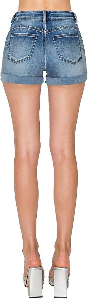 Potassium wash denim shorts with rolled cuffs and a high rise waist. Fabricated in the classic Butt I Love You Push Up denim to give your booty an extra lift and your curves a flattering hug.