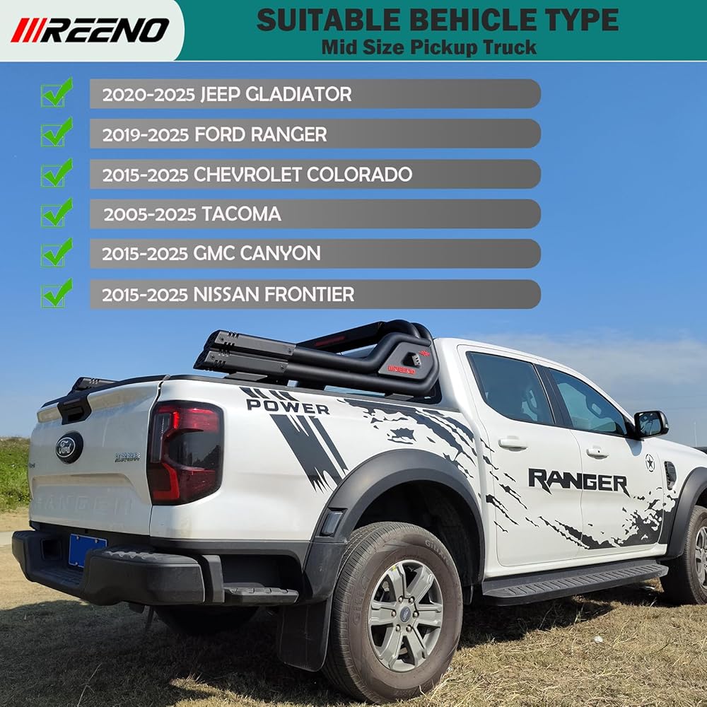 【FITMENT】Adjustable design offers extension options for fitment to different sizes of trucks,Compatible with most Mid Size Pickup Trucks, 2005-2025 Toyota Tacoma/2020-2025 JEEP Gladiator/2019-2025 Ford Ranger /2015-2025 Chevrolet Colorado/2015-2025 GMC Canyon /2015-2025 Frontier Pickup trucks.(Adjusted range from 54" to 59" )