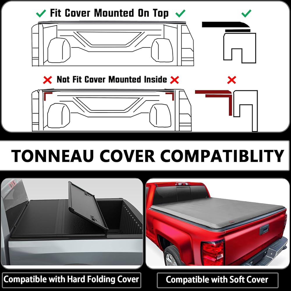 【COMPATIBLE WITH 】Compatible with most tri-fold tonneau covers mounted on top of truck bed rails. Incompatible with the tonneau covers mounted inside.