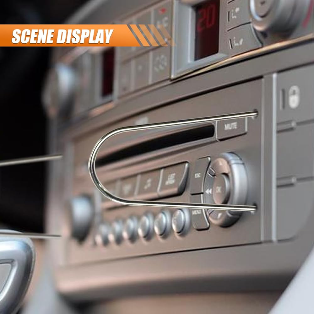 The car radio prying tool is made of high-quality stainless steel, sturdy and long-lasting, and its smooth surface ensures that it will not give your car radio scratches during use.