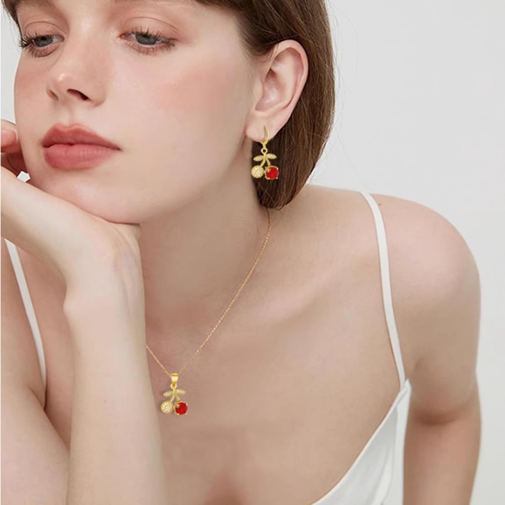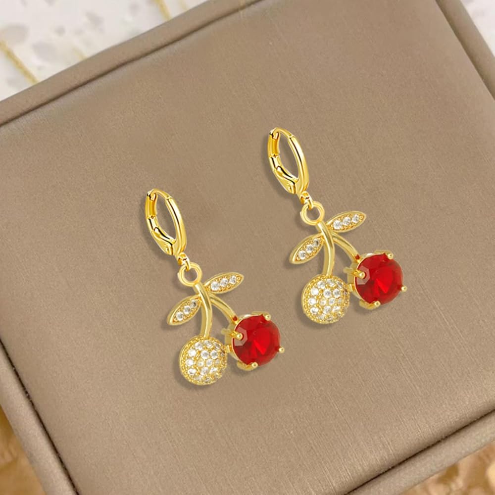 🍒 【Cherry Earrings】: The shape of the cherry is smooth and round, the fruit is bright red, the flesh is tender and the taste is sweet, and it has the meaning of happiness, beauty, sweetness and cherishment.