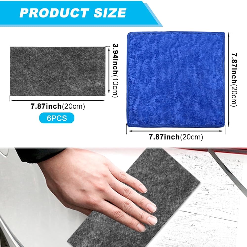 【WHAT YOU WILL GET】You will receive 6pcs car scratch remover cloth and 1pc wash towel, enough to use. Make sure the repair area is dry and clean. Please avoid exposure to air, put scratch remover cloth into the bag and tightly seal after use.