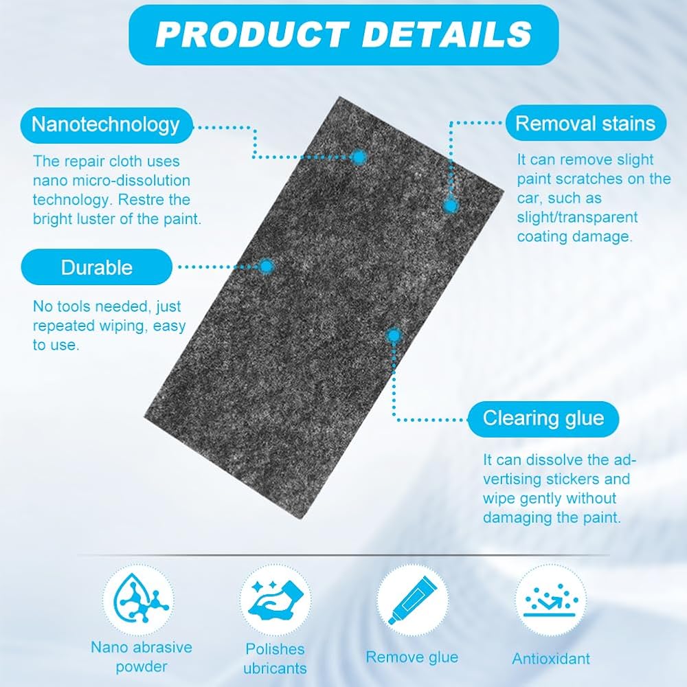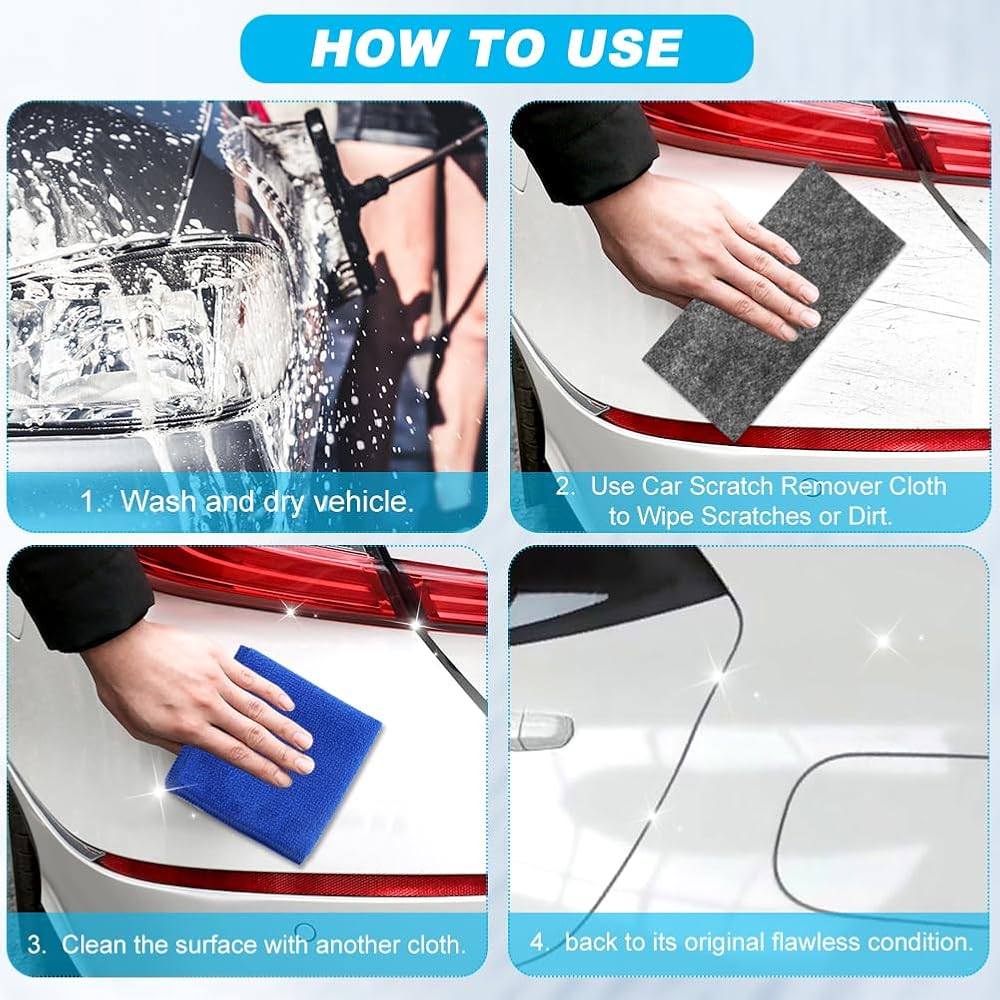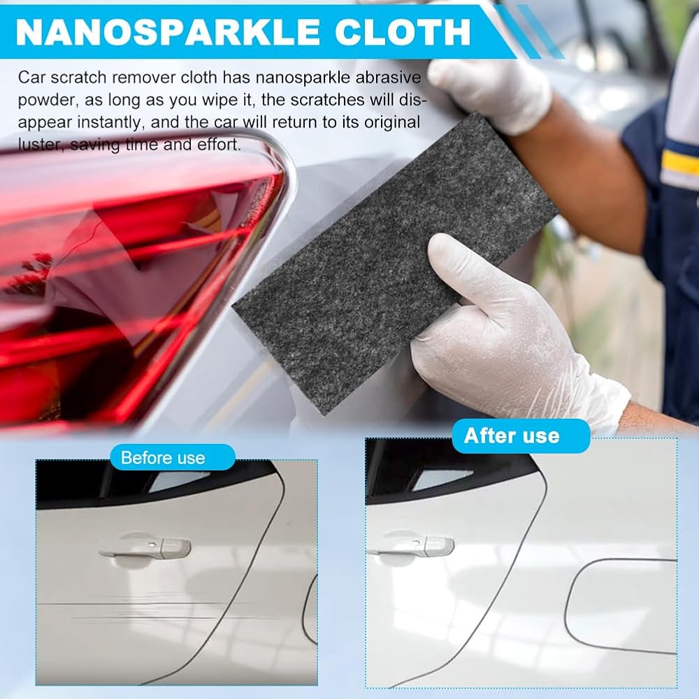 • 【2025 UPGRADE NANO SPARKLE CLOTH】Depend on advanced nanotechnology, scratch remover cloth effectively remove car's scratches and stains, restore car color and protect paint surfaces.