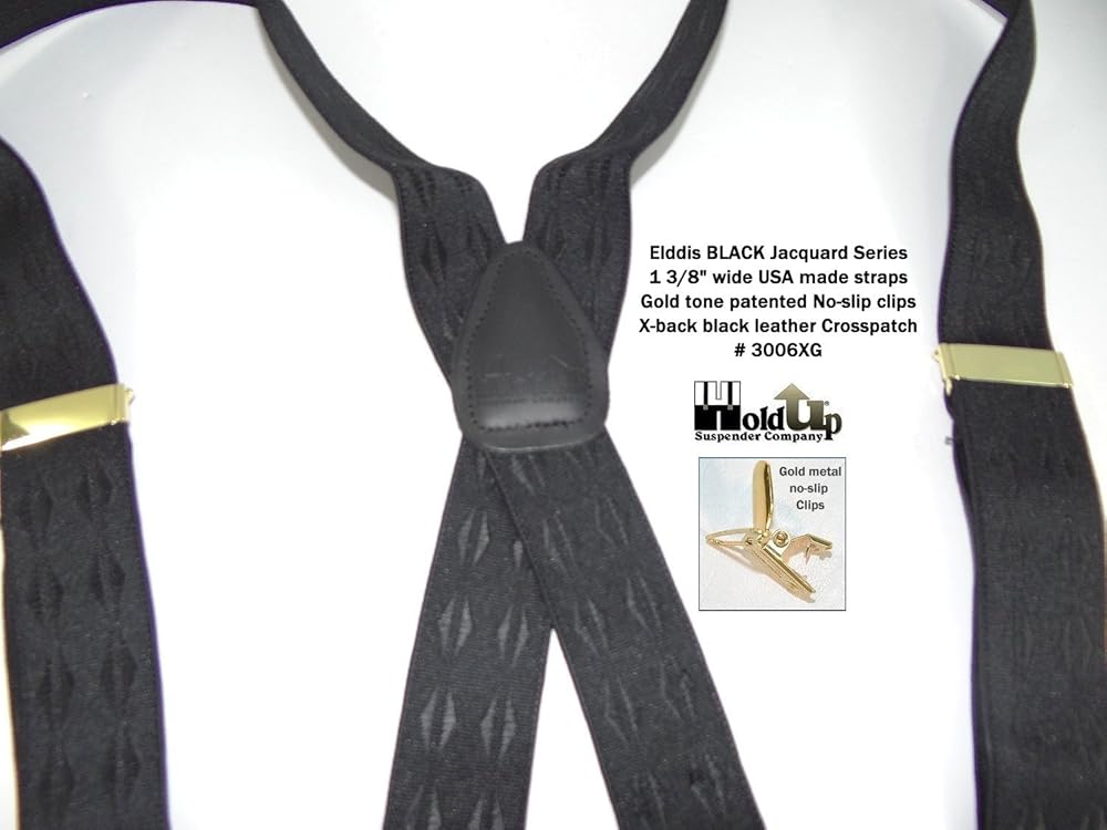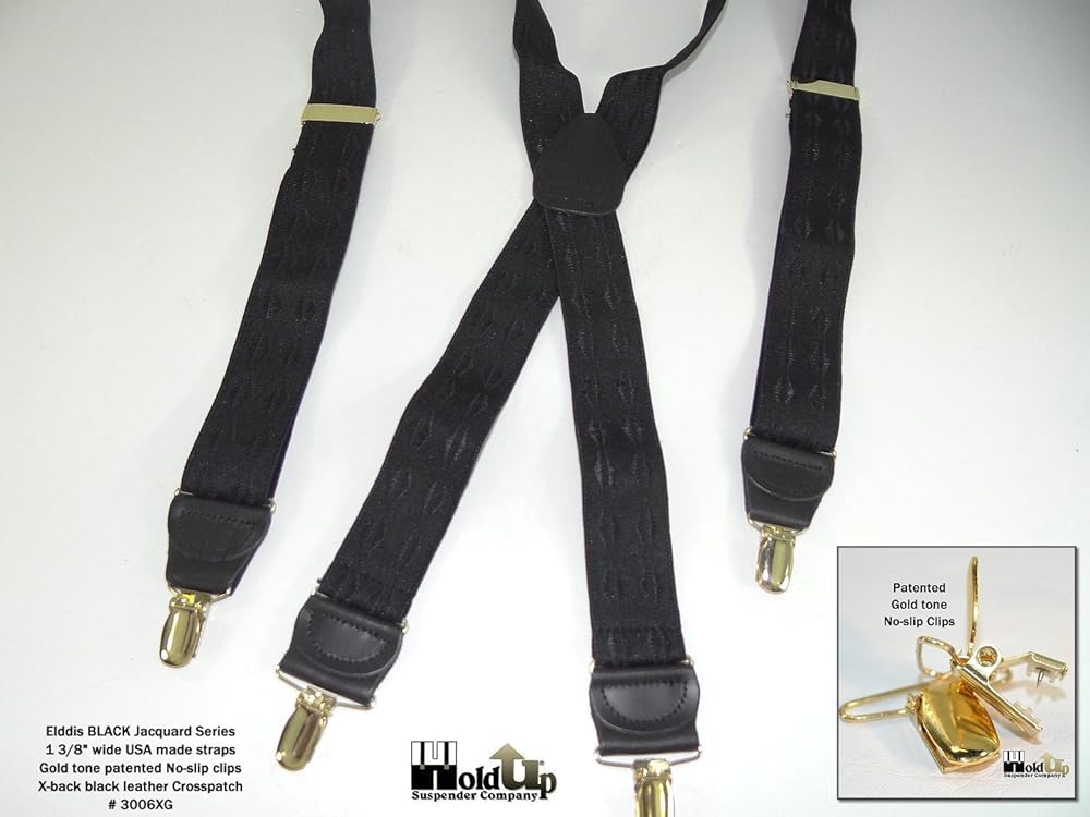 Hold-Up Suspender Company Jacquard Series Suspenders for Men X-Back Style with USA Patented Black No-Slip Clips