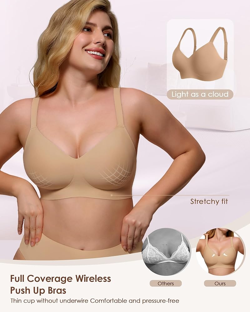 【Revolutionary Wire-Free Support】This soft comfortable bra features innovative Jelly-Strips Technology and layered mesh construction for cloud-like comfort with surprising lift. Perfect all-day support without restrictive underwire—ideal for daily wear