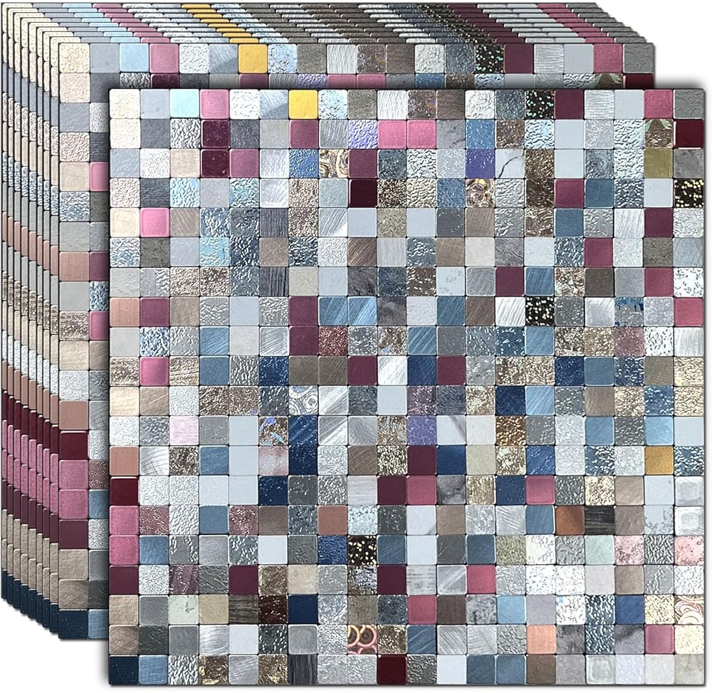 Each backsplash tile has brushed or frosted aluminum surface and self-adhesive backing, no grout. Strong stickiness, will not fall off. Light weight ,waterproof, oil proof, easy to clean.