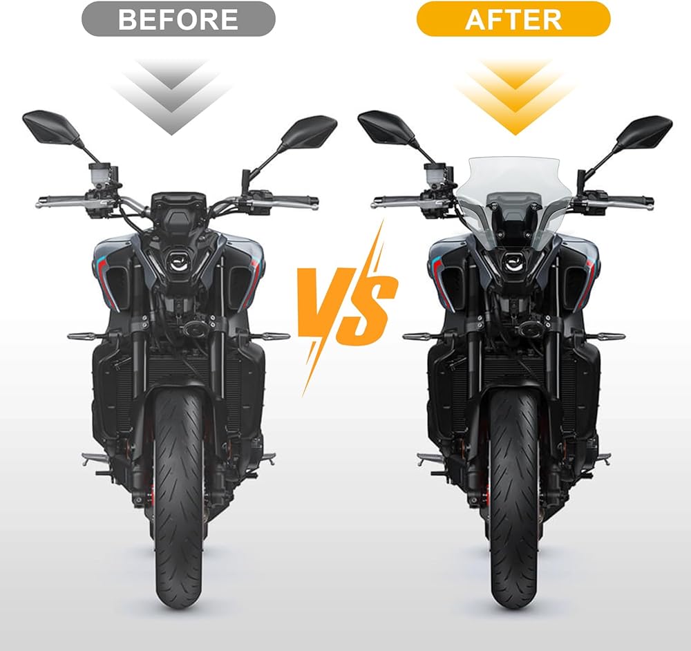 【Installation】The MT-09 windshield is easy to install, with no drilling or other complications, allowing you to install it quickly and experience a higher level of variability on your motorcycle.