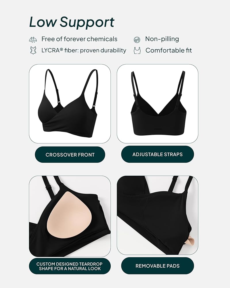 PADDED FOR COMFORT: Our cross front bralette includes removable pads that are designed for A-C cup sizes. Our signature bra pads feature a tear-drop shape that naturally contours to your body, delivering invisible seamless edges for a sleek, undetectable look. They ensure you feel confident and comfortable in every moment of your day.