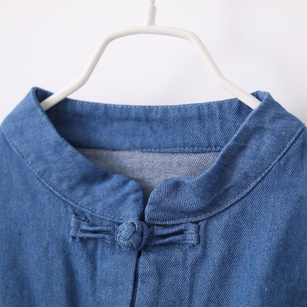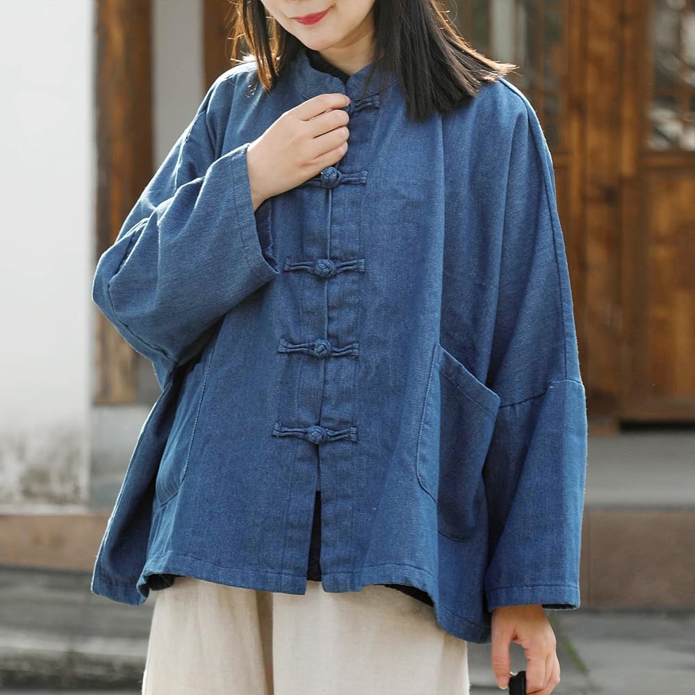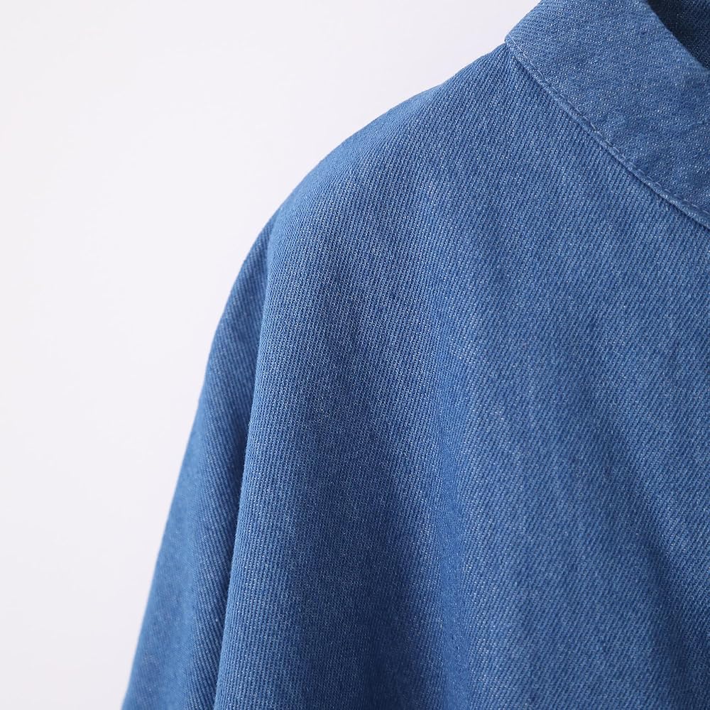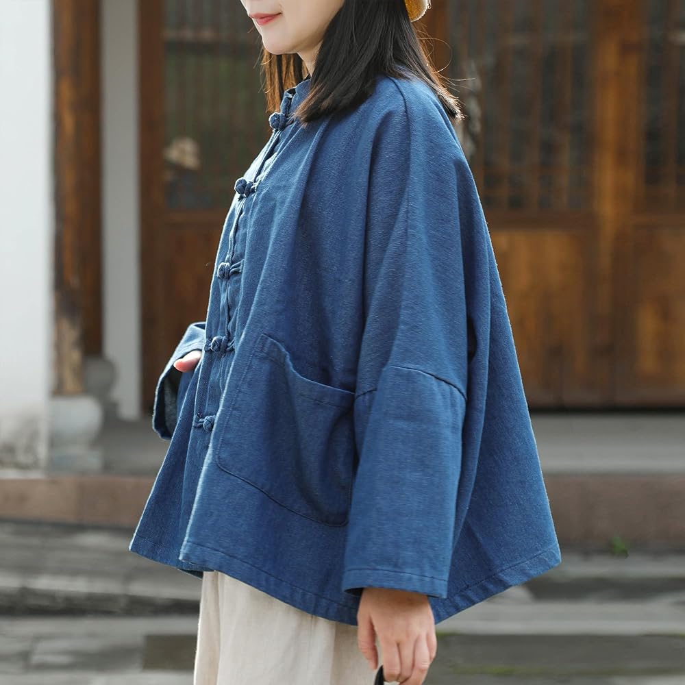 Fashion Design: This women's oversized denim jacket features cotton fabric, loose bat sleeves, a unique collar and button design, providing a comfortable wearing experience