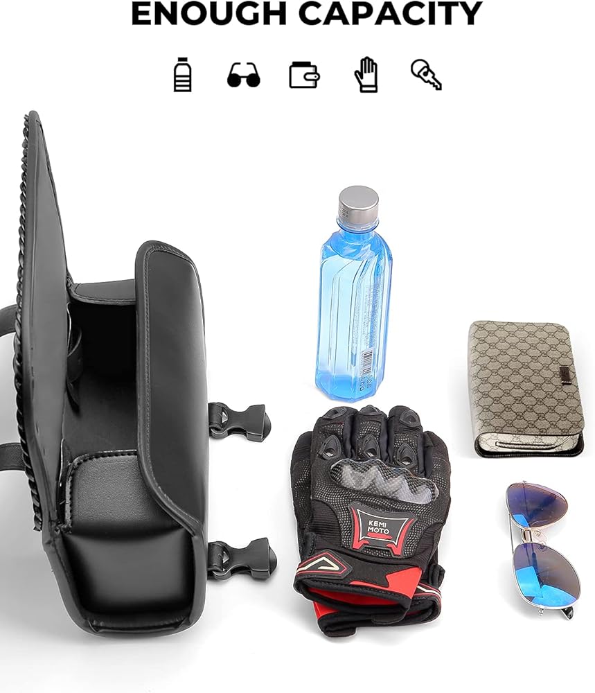 【Convenient Access】Featuring 2 Quick Release plastic buckles, this motorcycle tool bag allows for effortless one-handed access to your items. The adjustable and removable back straps ensure maximum comfort and convenience.