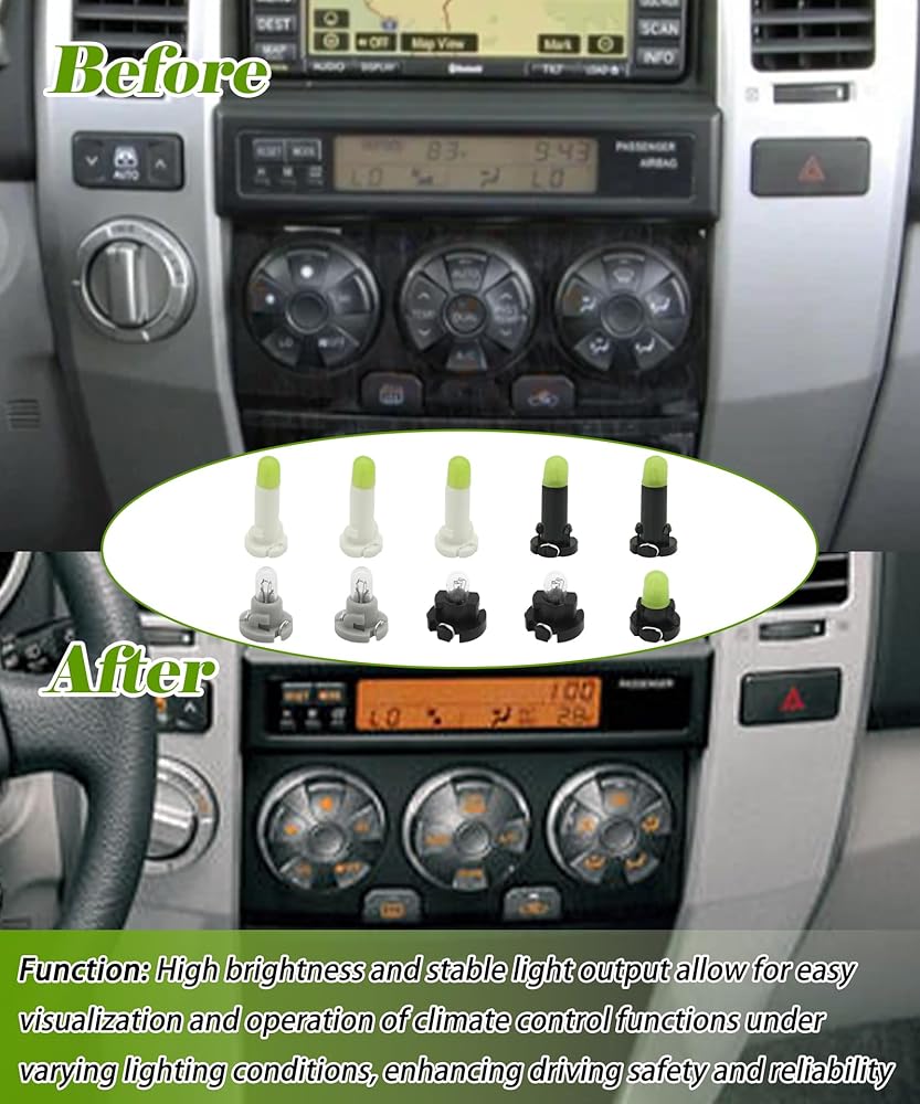 【Function】: High brightness and stable light output allow for easy visualization and operation of climate control functions under varying lighting conditions, enhancing driving safety and reliability