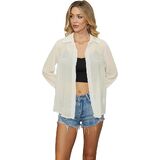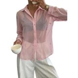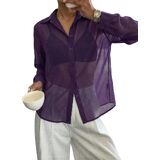 - Design: sheer mesh, see through, button front, collared