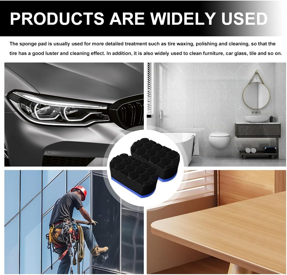 Uniform Application:The hexagonal textured surface of this tire dressing shine sponge ensures even distribution of the tyre dressing and absorbs the dressing evenly, preventing it from dripping during use, compact and convenient to use
